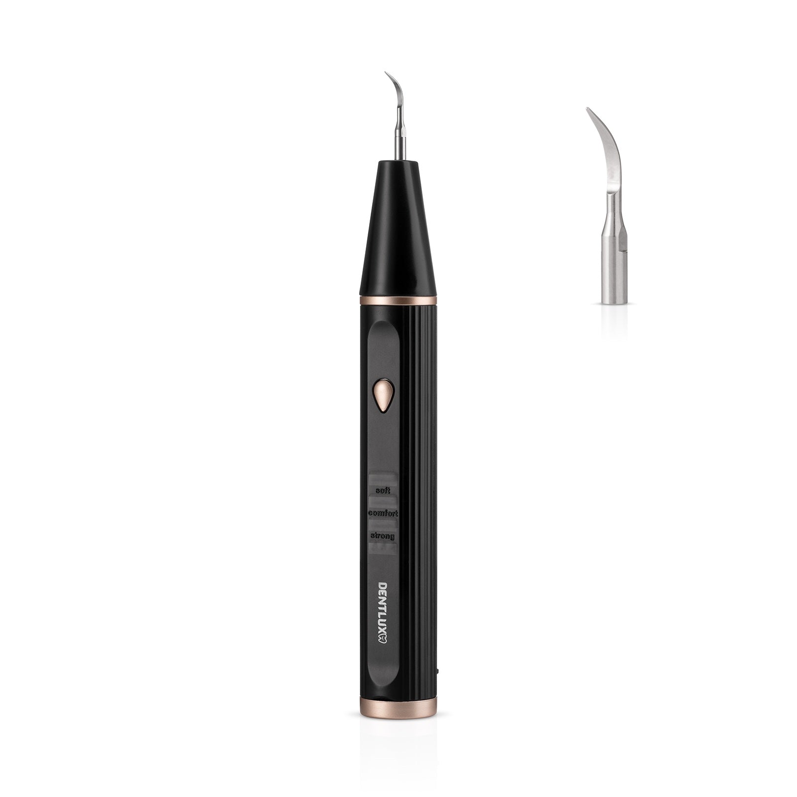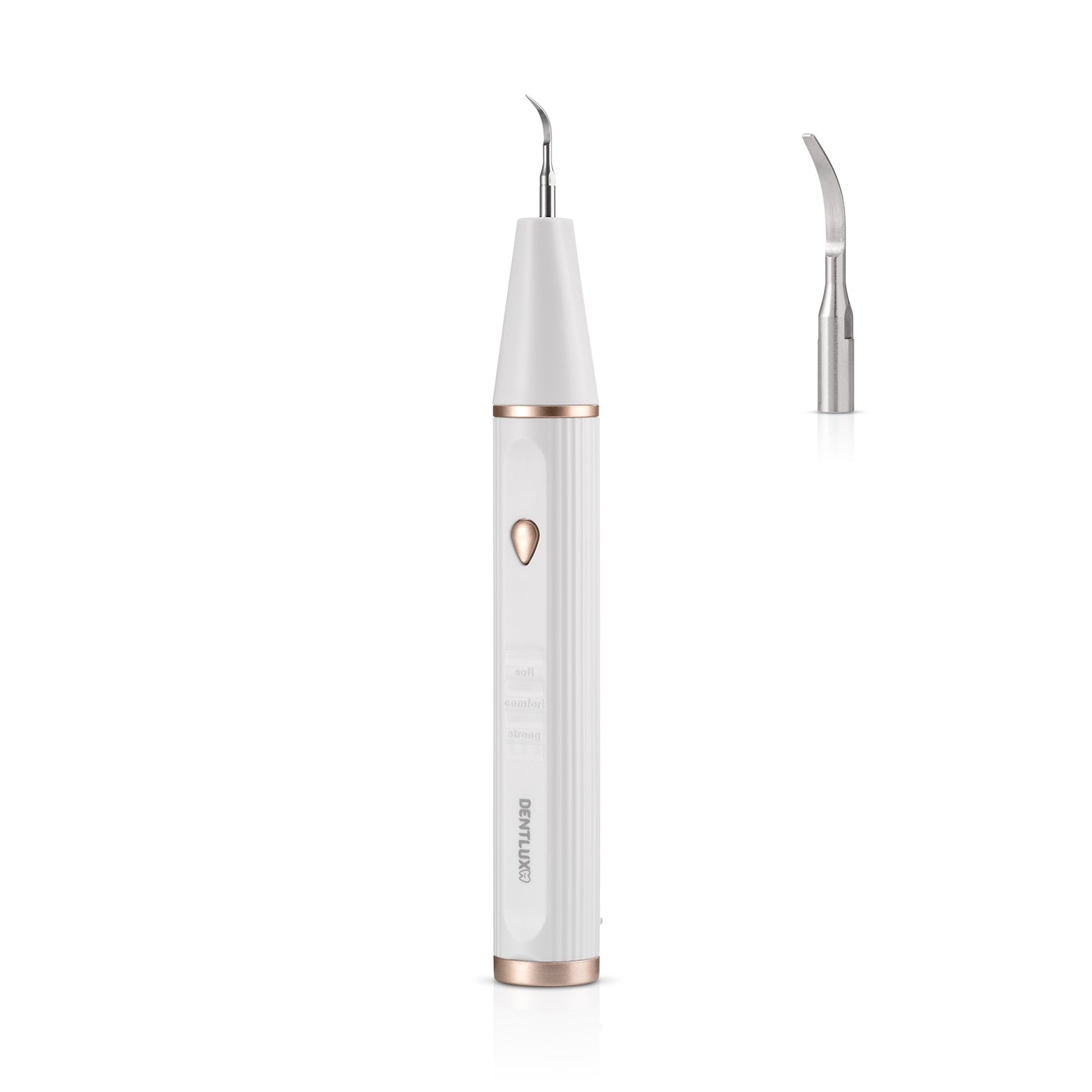 Každý úsmev potrebuje inú starostlivosť. Preto má prístroj tri úrovne výkonu, ktoré sa prispôsobia vašim potrebám. Režim Soft je šetrný k citlivým zubom a ideálny na začiatok. Comfort zvládne každodenné čistenie a udrží zuby hladké a bez povlaku. A keď treba, Strong si poradí aj s tvrdým zubným kameňom a odolnými škvrnami – rýchlo, šetrne a s perfektným výsledkom.